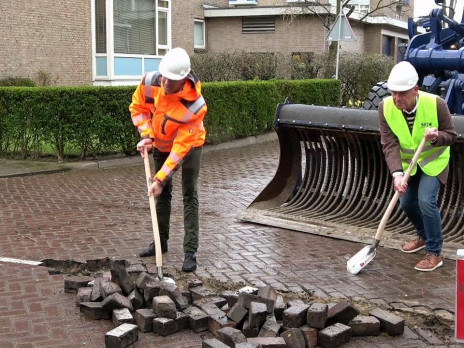 Afgelopen maandag heeft de wethouder samen met Gert van Capelleveen, voorzitter van de SOC het startsein gegeven voor de renovatie van deze straat die hopelijk hierna weer door het leven zal gaan als de Landréstraat.