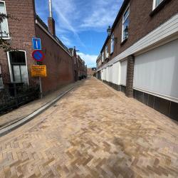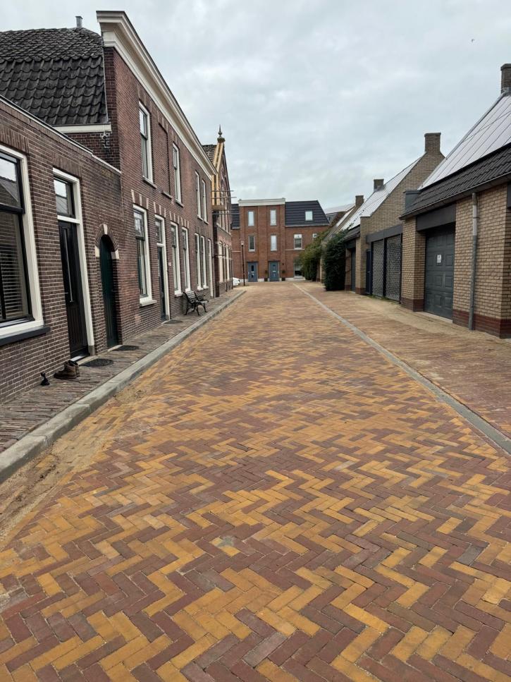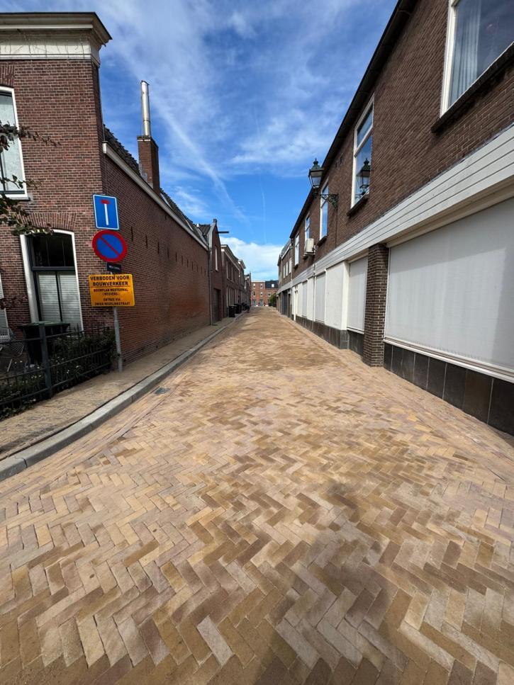 Nieuwe bestrating voor de Westerwal in Oudewater. De bewoners moesten er even op wachten maar het resultaat mag er zijn. De straat heeft weer een mooie uitstraling gekregen. Ondanks de krappe ruimte is het straatwerk mechanisch gelegd.