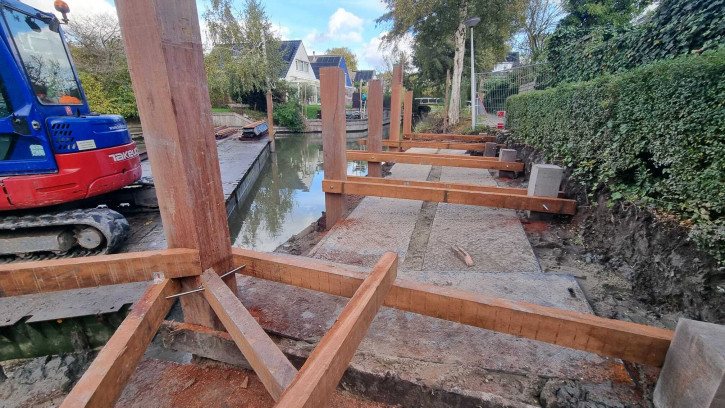 Tot slot zijn ook de beschoeiing en het omliggende straatwerk meegenomen in de werkzaamheden. Dankzij deze complete aanpak kan de vlonder er weer jaren tegenaan.