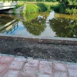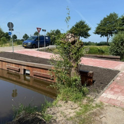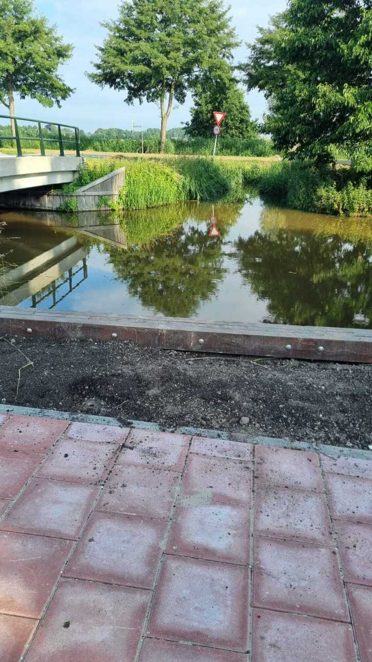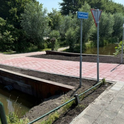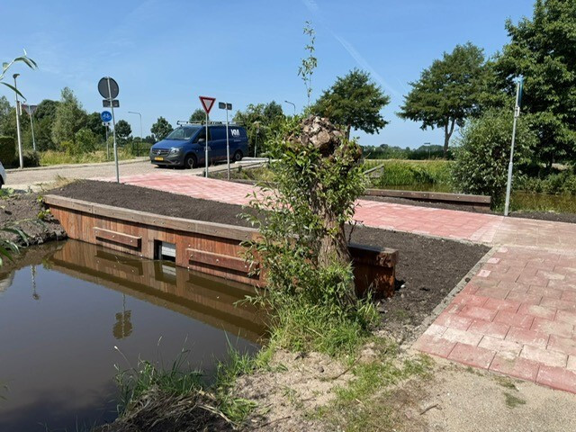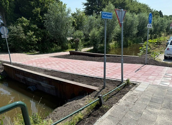 De oude fietsbrug aan de Ooievaarsdreef is verwijderd. Hier is een dam met duiker (regelbare inlaat) aangebracht om het waterpeil netjes op niveau te houden. Onder water is nieuwe beschoeiing aangebracht. Daarna is nieuwe klinkerbestrating aangelegd om een en ander weer goed op elkaar te laten aansluiten. Dit project betrof een combinatie-opdracht van de gemeente Zuidplas en HHSK Schieland.
